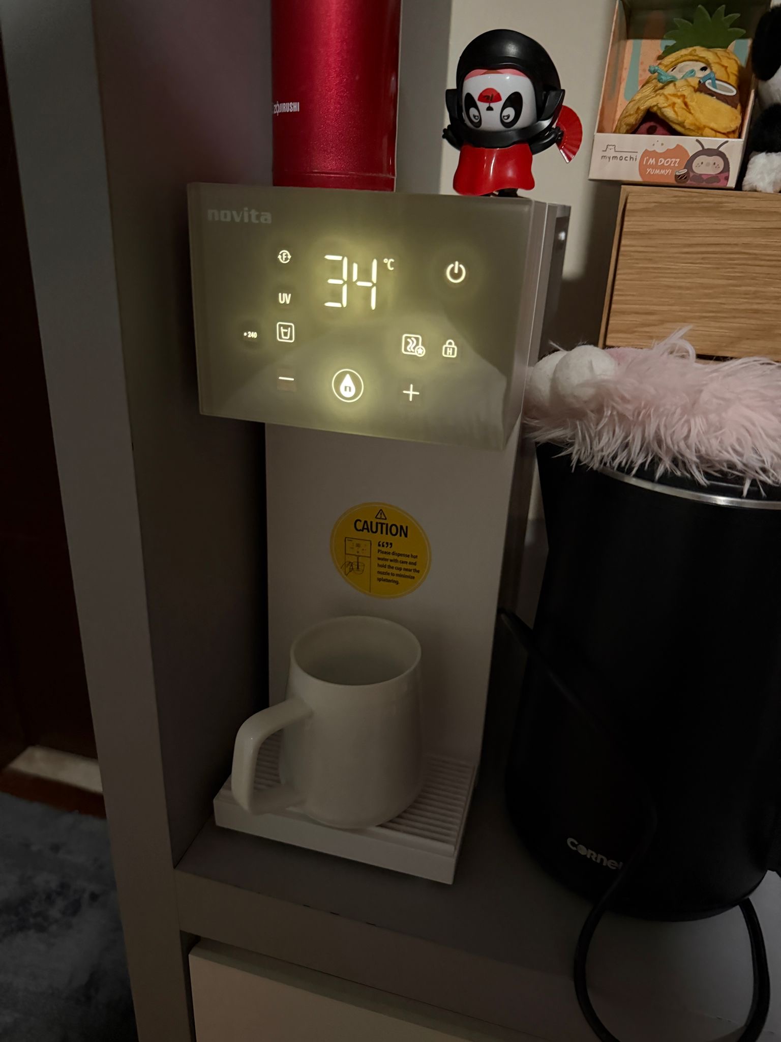Pauline frequently feels very cold in the night and some hot water would be helpful during those times. So we got a water dispenser that can do instant hot water.